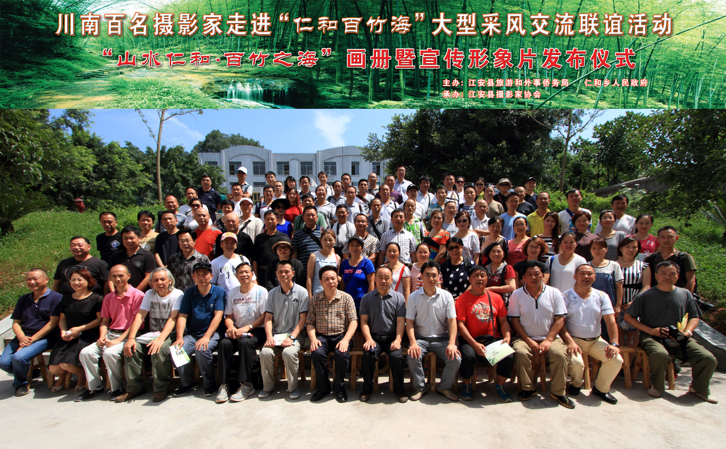 7月18日-19日,宜宾市江安县旅游和外事侨务局、仁和乡人民政府主办,江安县文化馆、江安县摄影家协会承办,川南百名摄影家走进“仁和百竹海”大型采风联谊活动,在仁和乡隆重举行。来自宜宾、自贡、泸州等川南地区150名摄影家走进美丽的仁和,在绿海翠竹中欣赏美景,在九龙滩、响水洞 、王家大院、接引寺等进行深度创作和交流。摄影家们被仁和清新秀丽的自然风光,颇有特色的人文风情所陶醉。