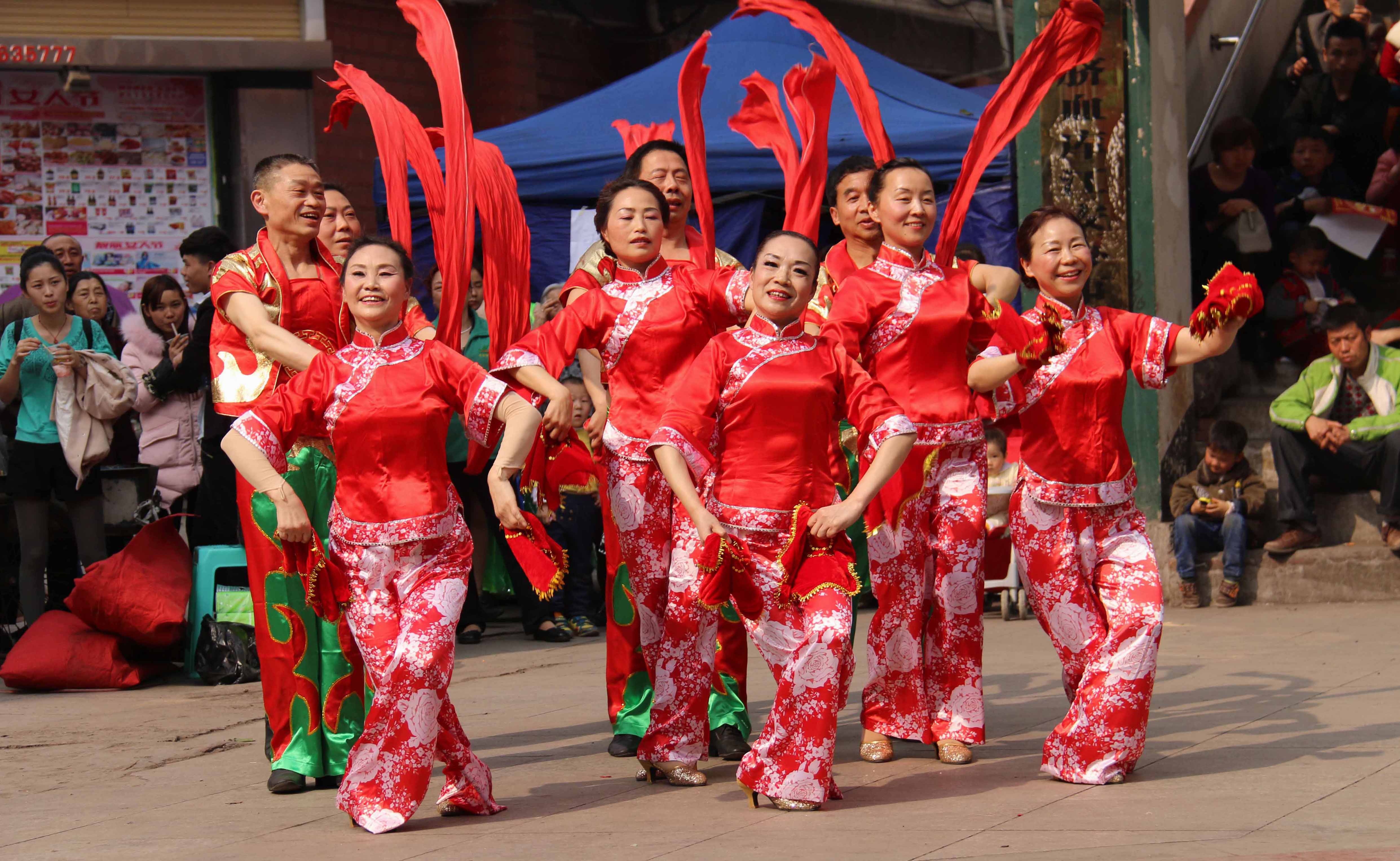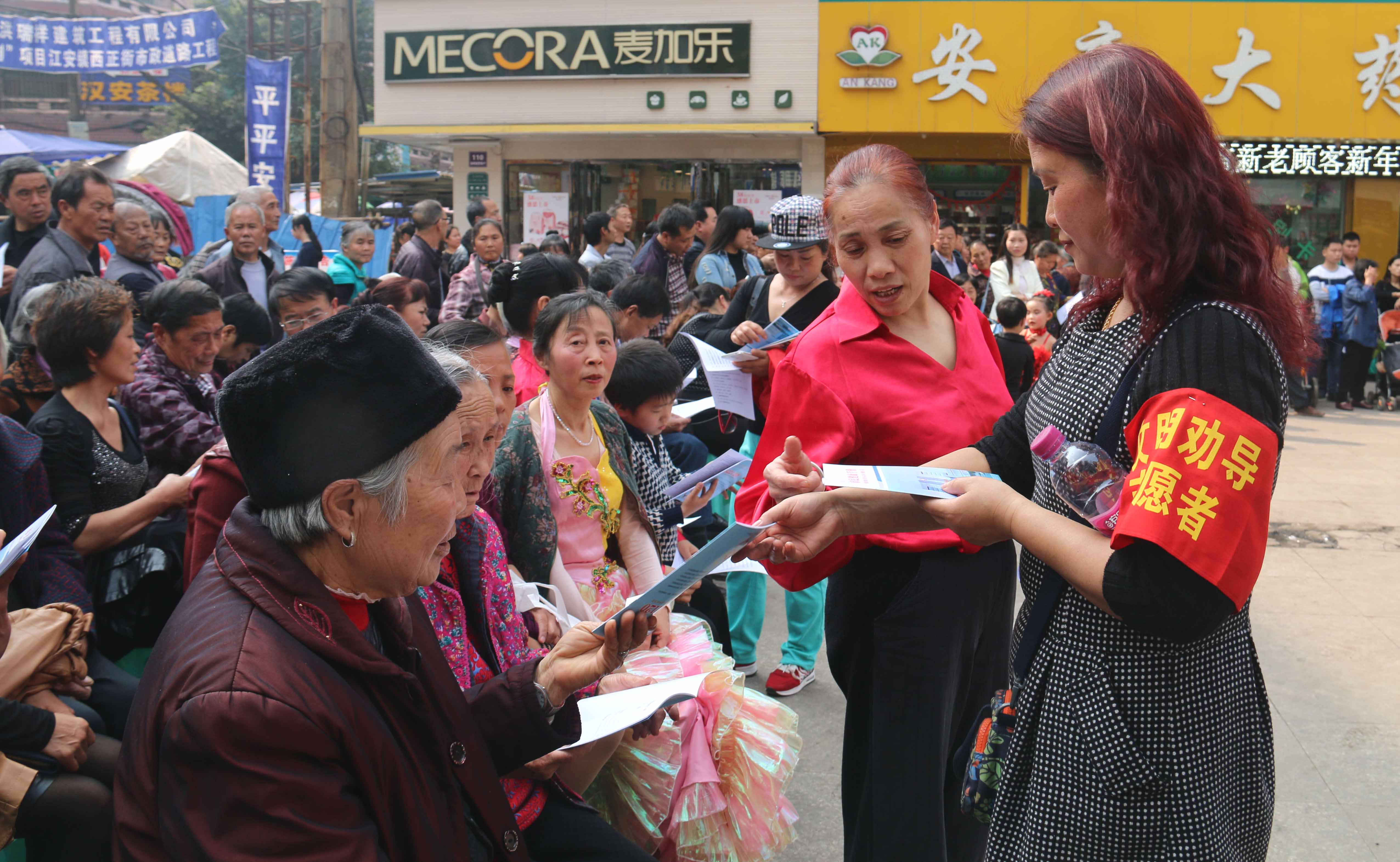 3月5日,江安县老体协的大妈们庆祝“三八”妇女节,走上街头义务开展“双创”文艺宣传活动,在群众中普及“双创”知识,促进城市文明建设。