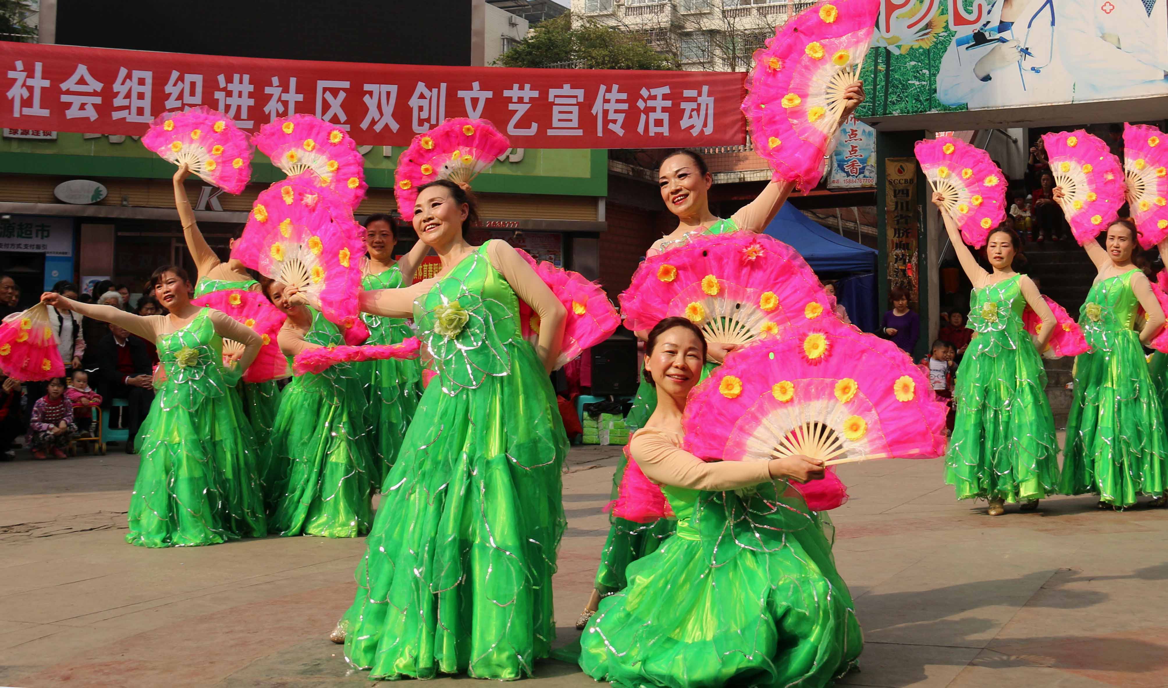 本次庆三八“双创”(创建省级文明城市和国家卫生县城)宣传活动,是县文明办、县社工委主办的“社会组织进社区双创文艺宣传系列活动”的首场表演,由江安镇体育舞蹈协会、六社区老年人体育协会联合承办,在县城十字口谯楼广场举行。下午3点演出之前,大妈们首先向广大市民散发了“双创”宣传资料,由主持人辅导群众学习,然后在文艺节目演出中,穿插“双创”知识现场互动有奖问答,进一步普及“双创”知识。上千名市民踊跃观看文艺表演、积极参加“双创”知识现场问答。老体协大妈们共演出了10多个节目,既有秧歌舞、交谊舞、扇子舞、拉丁舞,也有宣传“双创”的小品、情景剧等,精彩的表演不断博得观众的热烈掌声。参加宣传活动的老大妈们认识到,用宣传“双创”知识的实际行动来庆祝“三八”节,既是一件光荣的中心工作任务,促进了社会文明建设,又能度过一个非常有意义的妇女节。因此,大家都积极投入,认真表演,使整场宣传内容丰富、形式多样、精彩热烈,受到满场观众的欢迎,收到很好的宣传效果。
