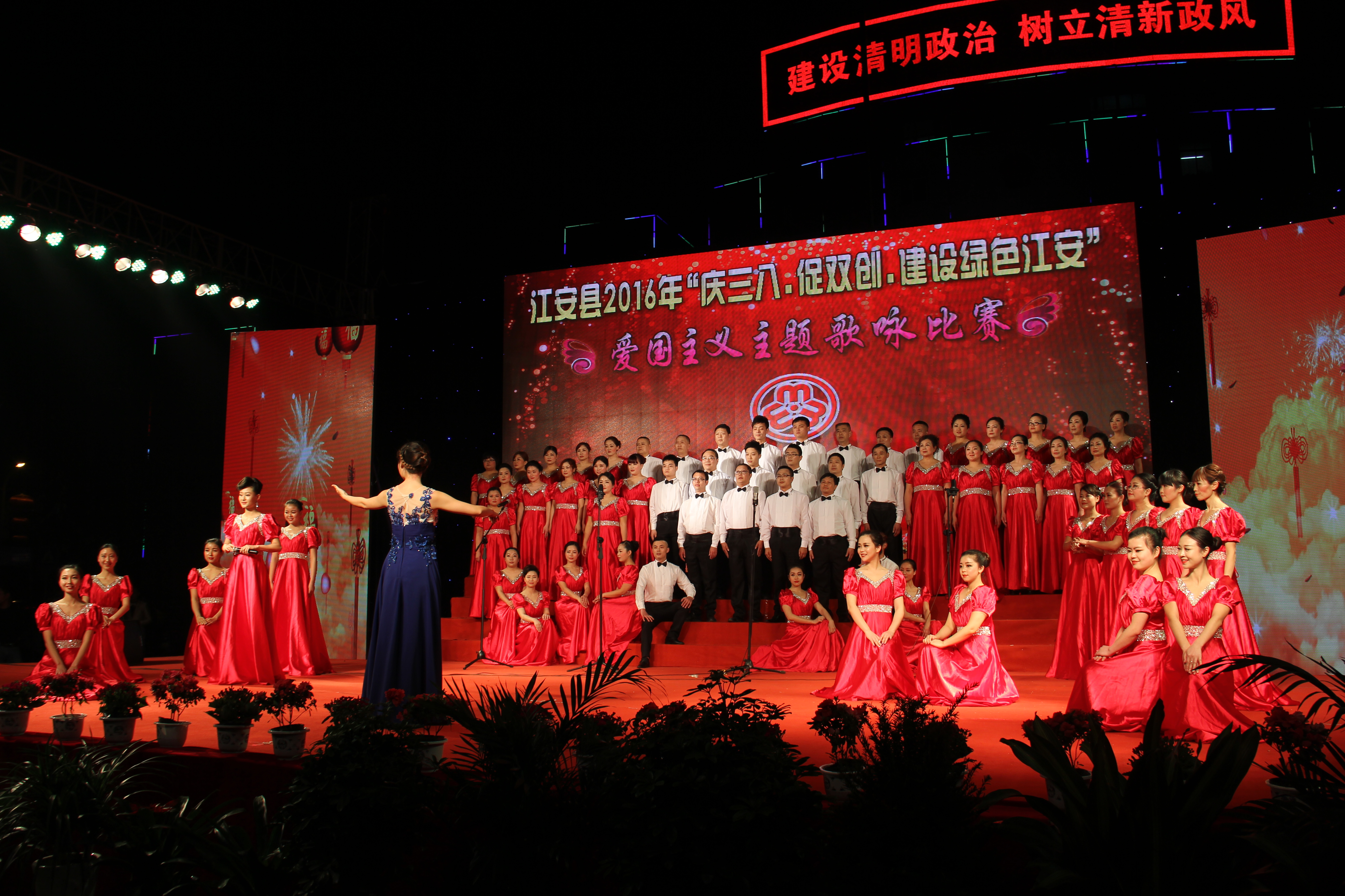 3月7日晚,由中共江安县委、县文化广电局、县妇女联合会主办的2016年“庆三八.促双创.建设绿色江安”爱国主义主题歌咏比赛,在竹都广场取得了圆满成功。