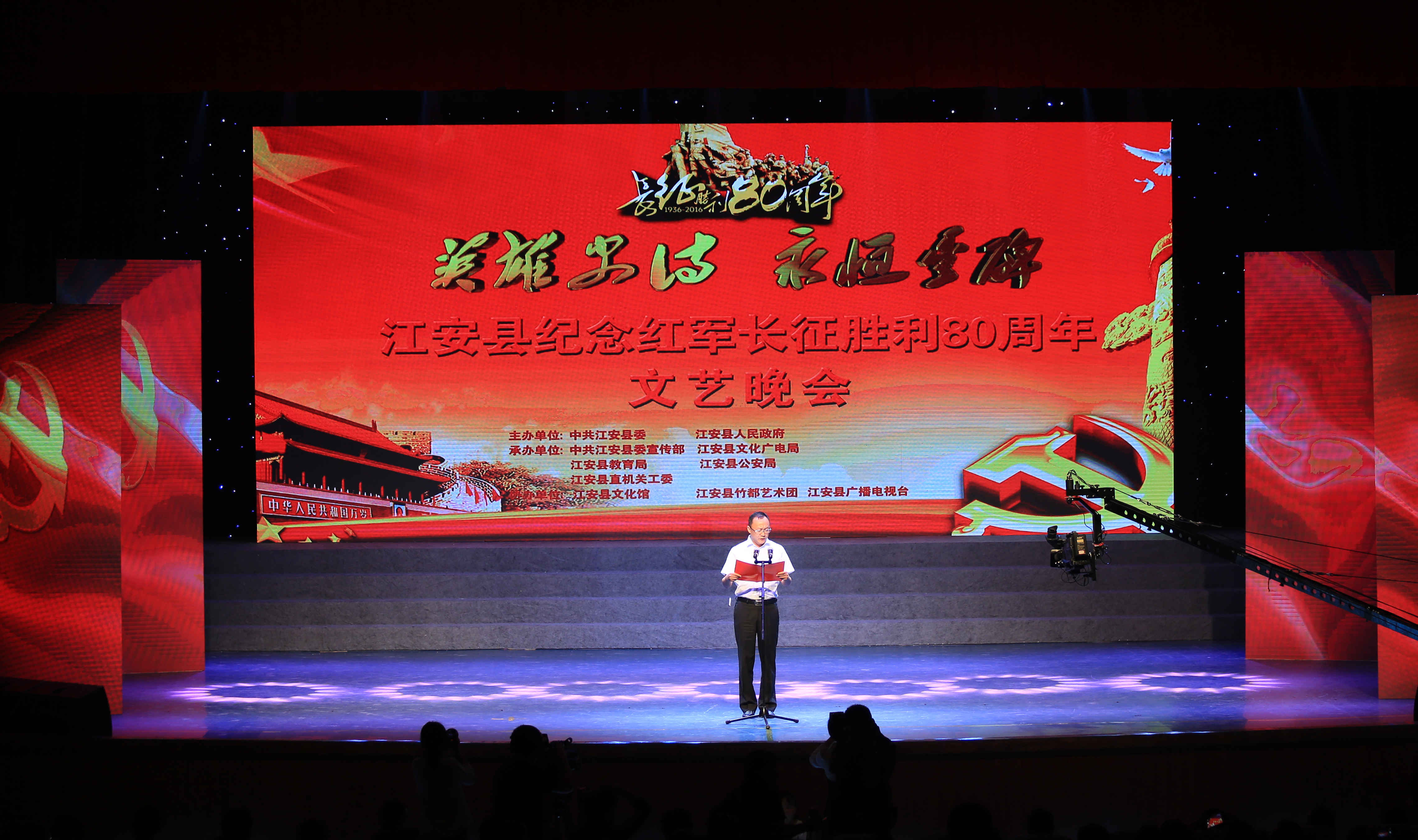 9月27日晚,由中共江安县委、江安县人民政府主办,中共江安县委宣传部、江安县文化广电局等单位联合承办的纪念红军长征胜利80周年文艺晚会在装饰一新江安剧场正式举行。