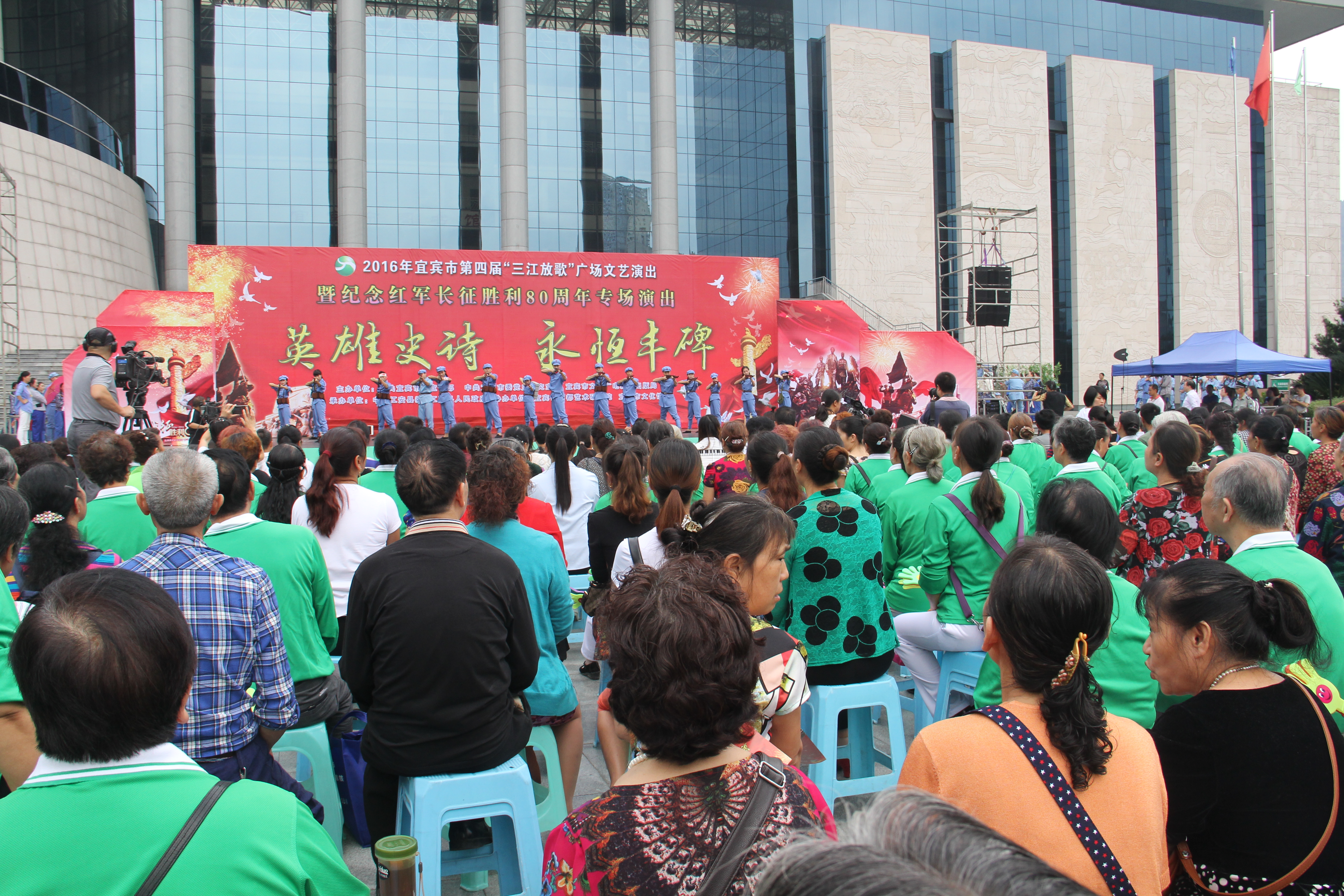 9月29日下午,2016年宜宾市第四届“三江放歌”广场文艺演出暨纪念红军长征胜利80周年“英雄史诗.永恒丰碑”专场演出在南岸文化科技中心广场震撼上演。