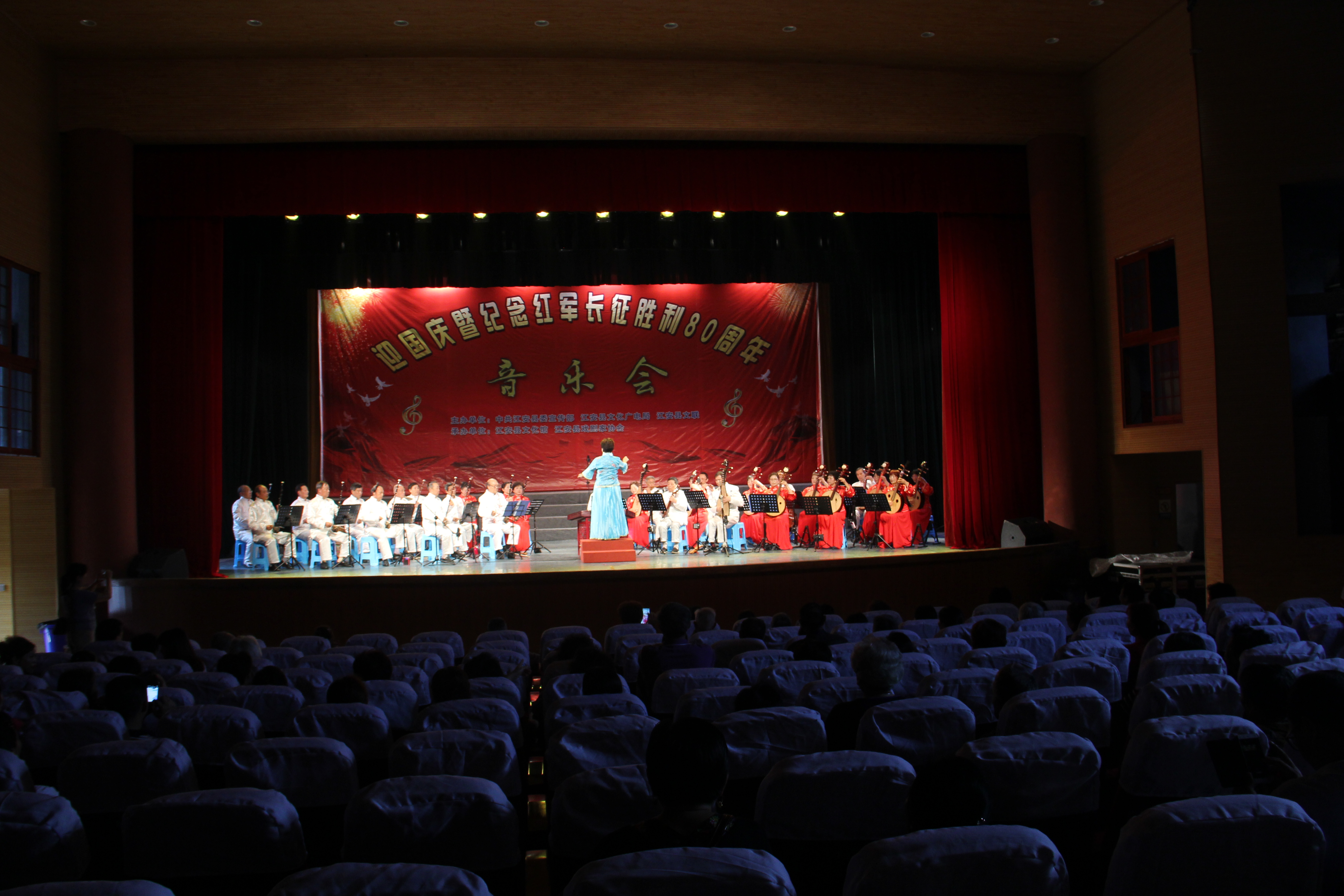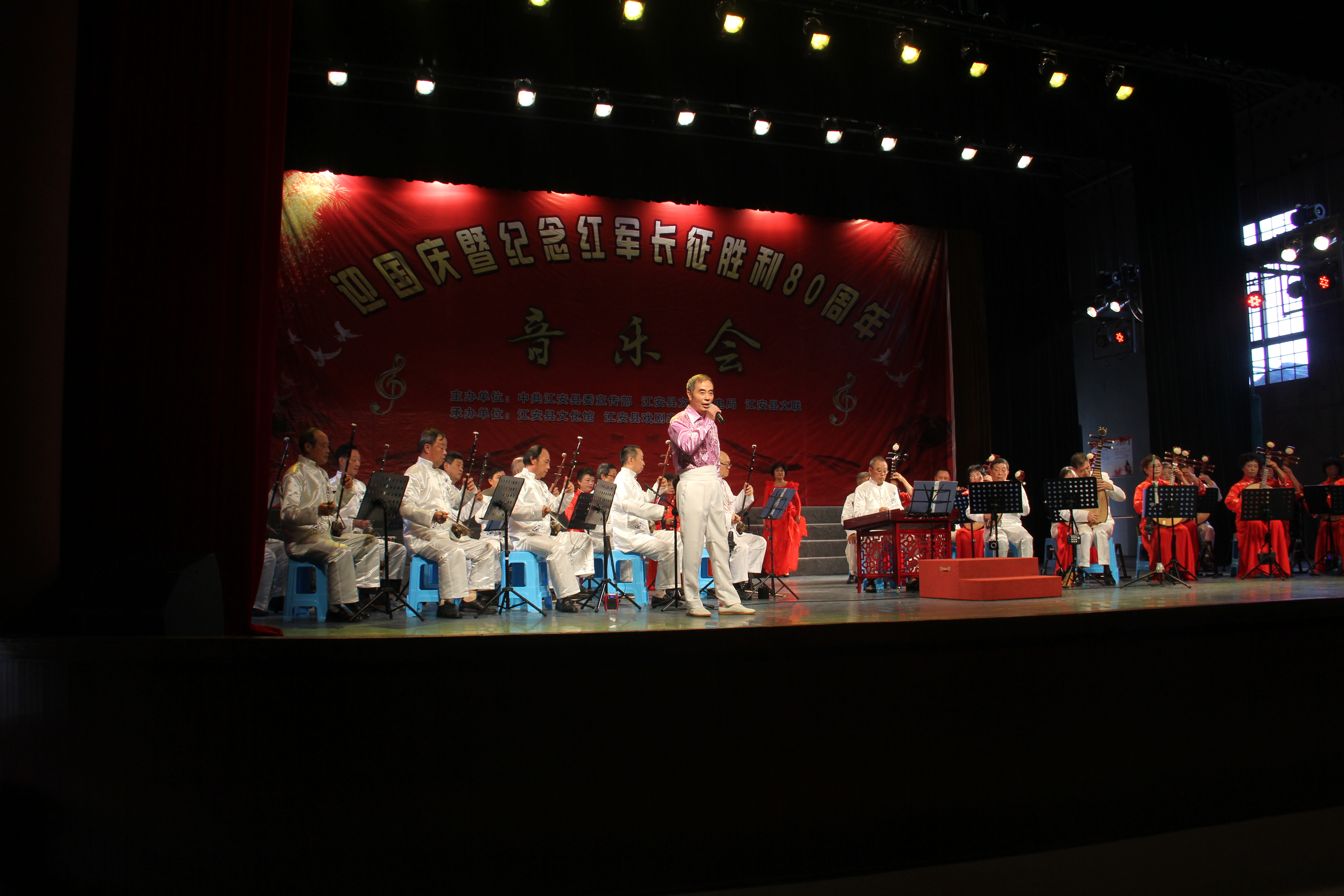 9月30日下午,由中共江安县委宣传部、江安县文化广电局、江安县文联主办,江安县文化馆、江安县戏剧家协会承办的迎国庆暨纪念红军长征胜利80周年音乐会,在江安剧场圆满举行。