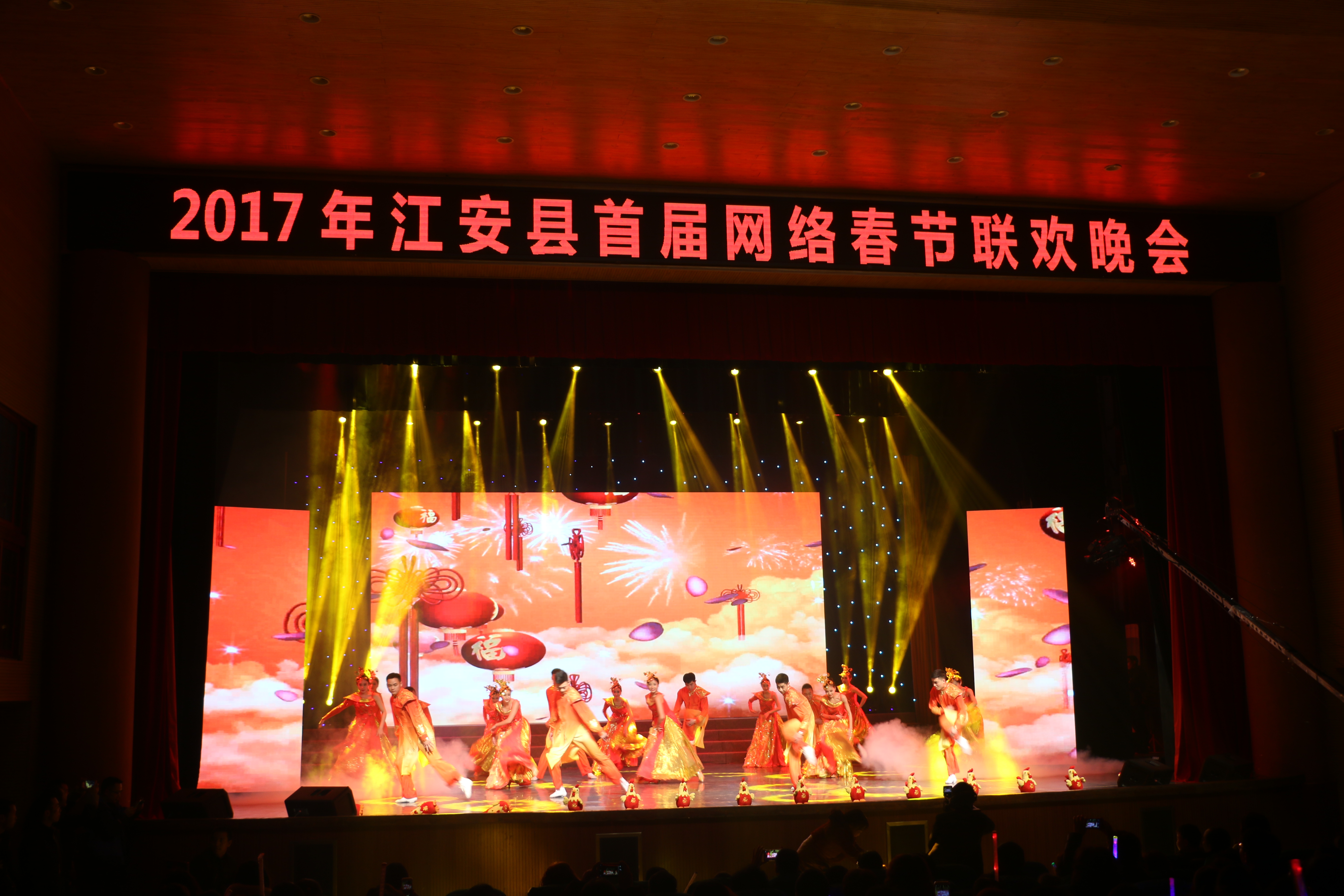 1月23日晚,由江安新闻网、江安县广播电视台主办,宜宾中阮文化传播有限公司承办,2017年江安县首届网络春节联欢晚会,在江安剧场隆重上演,本场晚会还通过江安新闻网、江安发布微信平台进行同步直播。