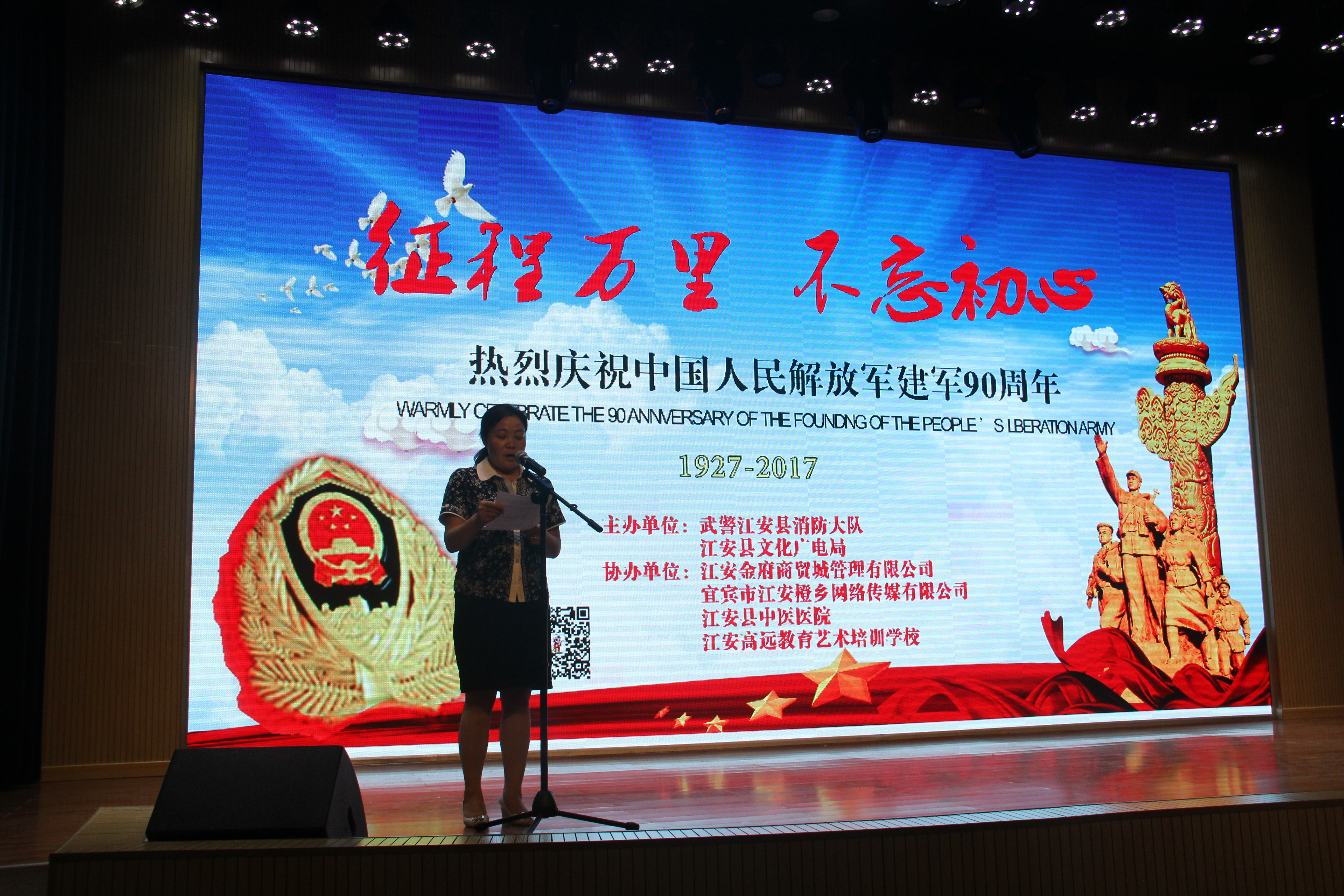 中国人民解放军90年走过的风风雨雨,走过的光辉历程,始终镌刻在我们的脑海里。值此建军90周年来临之际,2017年7月26日, 由武警江安县消防大队、江安县文化广电局主办,庆祝中国人民解放军建军90周年活动在四川师范大学附属宜宾实验外国语学校学术厅举行。