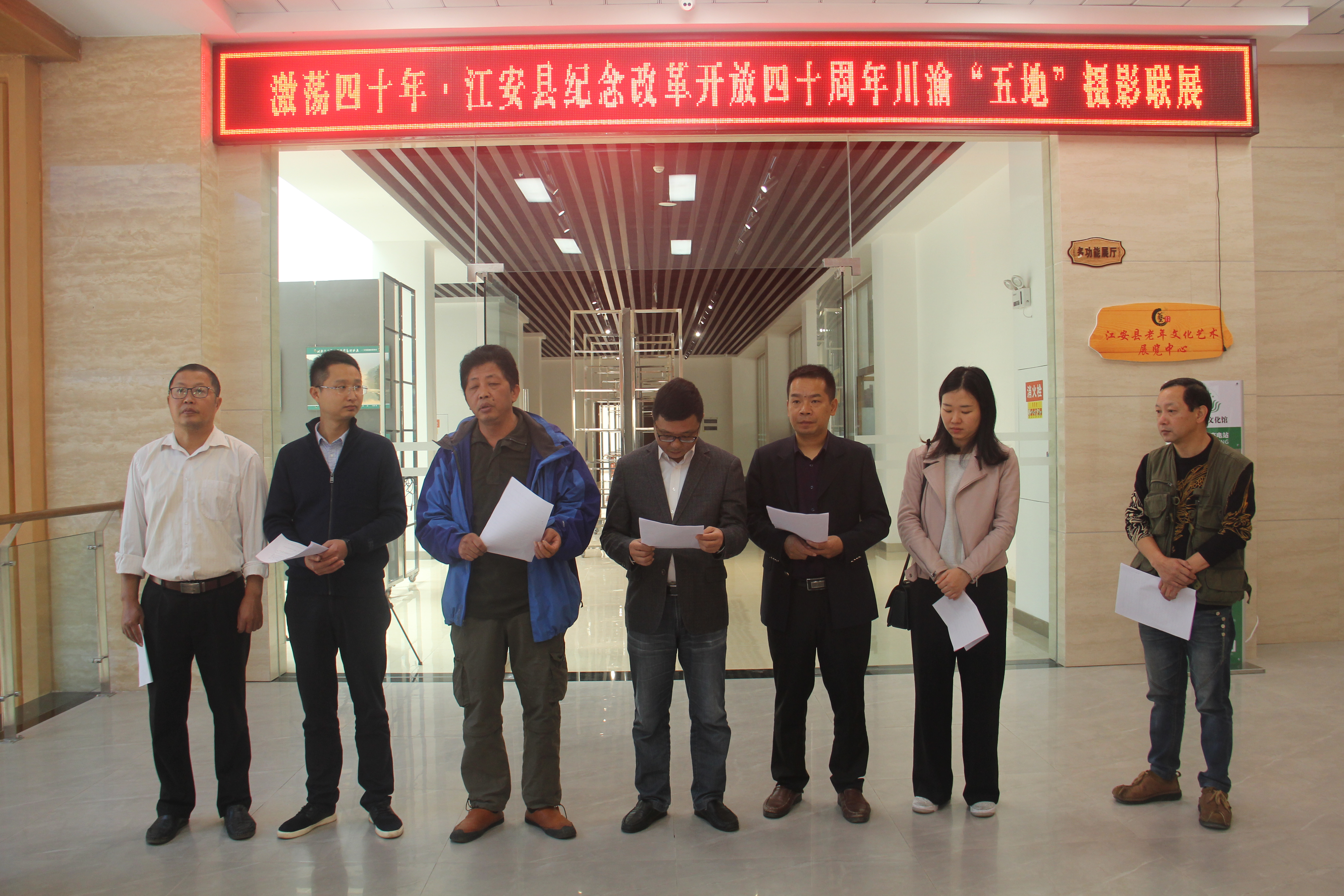 在摄影联展开幕仪式上,县摄影家协会主席刘建雄就基本情况作了介绍,摄影师们用相机记录下了改革开放的点点滴滴,谱写着改革开放以来的成果。县委宣传部副部长、文明办主任陈德智在现场宣布纪念改革开放四十周年川渝“五地”摄影联展开展,前来观看的群众络绎不绝。据悉本次摄影联展持续半个月,给江安摄影爱好者带去了一场精彩的视觉盛宴,感受改革开放四十周年带来的巨大改变。