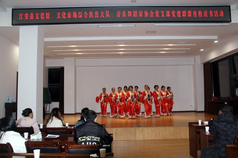 为全面贯彻新时代党的建设总要求,不断激发支部党建新活力,推动支部党的建设全面发展,全面进步,全面过硬,促进区域党建资源互通共享、工作优势互补。发挥党建联盟的组织优势、示范效应、集聚效应。文化馆党支部全体党员含积极分子与文化市场和稽查大队党支部、县音舞协会党支部全体党员于11月28日晚,在县文化馆三楼多功能活动厅开展了党建联盟“读书活动”。