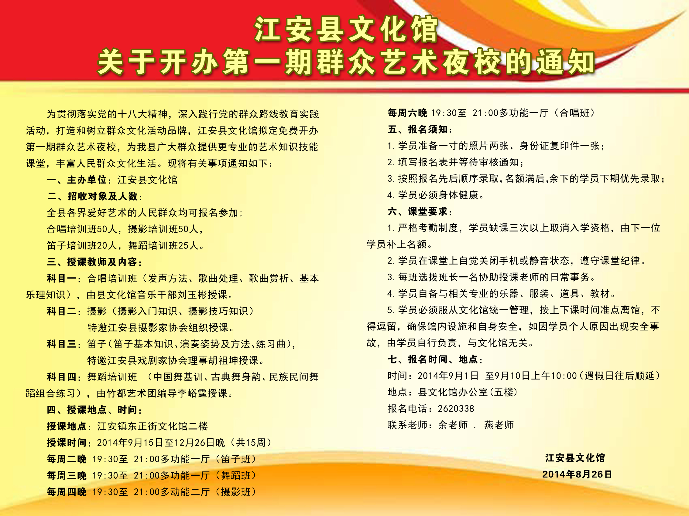 江安县文化馆第一期群众艺术夜校