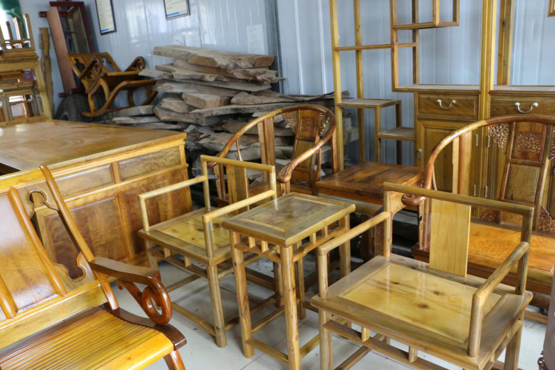 江安古典“榫卯”家具的特点是用材考究,因江安盛产优质木材,故制作家具用材孝究。“金丝楠木”为首选,“柏木”、“香樟”、“红豆”等用材较多。一个家具,讲究“木质文理”,各类材料颜色相近,木质“文理”相连,形成一件“浑然天成”艺工特色。